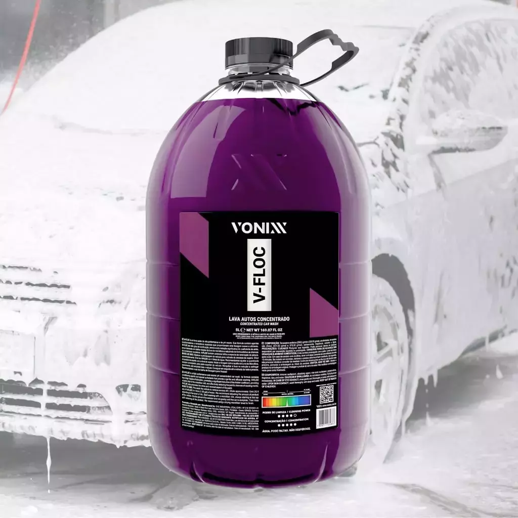 V-Floc é um lava autos de alta performance e de pH neutro. Sua fórmula contém agentes condicionadores e tensoativos especiais que proporcionam uma lavagem suave e eficiente. V-Floc tem alto grau de lubrificação, promovendo redução significativa do coeficiente de atrito, proporcionando um melhor deslize da luva microfibra e reduzindo de forma efetiva as chances de microrriscos na pintura. V-Floc também promove brilho e aspecto de renovação da pintura.